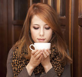 Zdjęcie "rude dziewczyny w stylu picia kawy w pobliżu drzwi drewniane." może być wykorzystywane do celów osobistych i komercyjnych zgodnie z warunkami zakupionej licencji Royalty-free. Obraz jest dostępny do pobrania w jakości wysokiej rozdzielczości do 5760x3840.