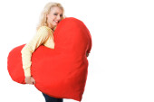 Valentine's Day. Piękna kobieta uśmiechający się z prezentu w postaci on