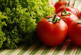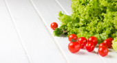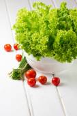 świeża sałata i pomidory na białym tle.