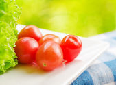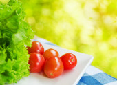 świeża sałata i pomidory na białym tle.