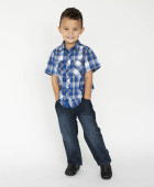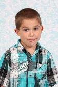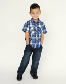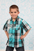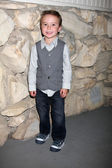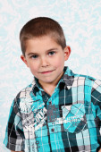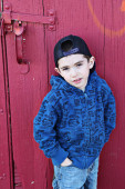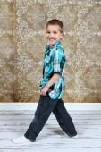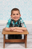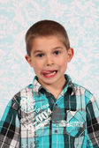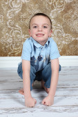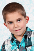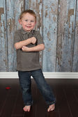 ładny, mały chłopiec, pozowanie na kamery