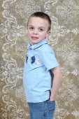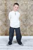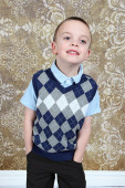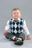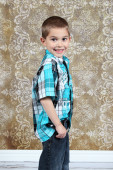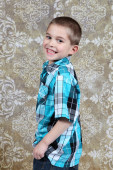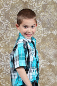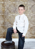 ładny, mały chłopiec, pozowanie na kamery