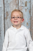 ładny, mały chłopiec, pozowanie na kamery