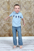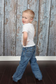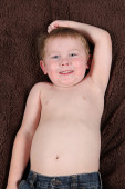 ładny, mały chłopiec, pozowanie na kamery