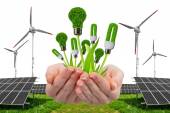 mała wyspa z kolektorów słonecznych i turbin wiatrowych