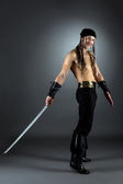 Strzał przystojnego mężczyzny w garniturze z paskami