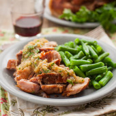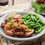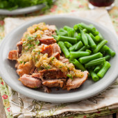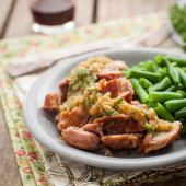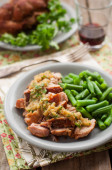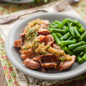 Powolny ugotowanej wieprzowiny z musu jabłkowego i Fasolka szparagowa