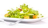 Zbliżenie sałatki na białym talerzu