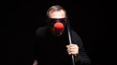 portret mężczyzny z krwawe łzy na tle bordowym