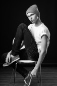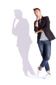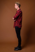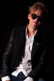 portrait of sad fashionable man posing in studio background