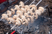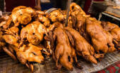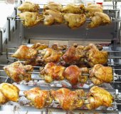wiersz grillowane ryby i kury na rynku pozagiełdowym