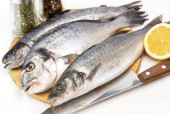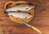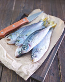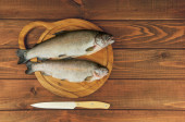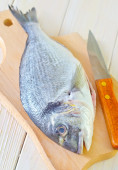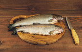 drewniany stół cięcia pokładzie ze świeżego surowca dorado ryb