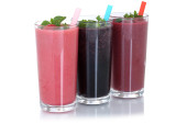 Sok owocowy koktajl ze świeżych owoców na białym tle