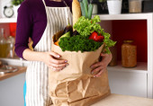 Zdjęcie "zdrowy pozytywne kobieta szczęśliwa trzymając papier koszyk pełen owoców i warzyw" może być wykorzystywane do celów osobistych i komercyjnych zgodnie z warunkami zakupionej licencji Royalty-free. Obraz jest dostępny do pobrania w jakości wysokiej rozdzielczości do 5760x3840.