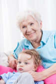 babcia trzymać dziecko dziewczynka uśmiechając się