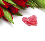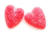 atached dwa cukierki w kształcie serca do siebie wykałaczką