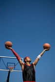 człowiek grający w koszykówkę
