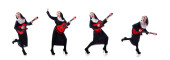 Kobieta w średniowiecznym arabskim ubraniu na białym