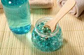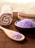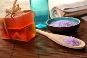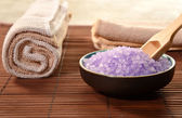 Spa martwa natura z sól do kąpieli, krem, mydło, ręcznik, świece