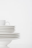 talerze porcelanowe białe i spodki