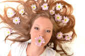 Piękna młoda kobieta z gerber kwiat izolowane na białym tle