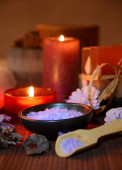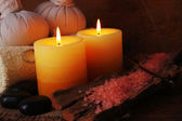 Spa martwa natura z sól do kąpieli, krem, mydło, ręcznik, świece