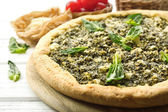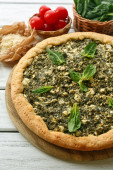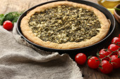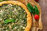 Zdjęcie "Otwarte ciasto ze szpinakiem z bliska" może być wykorzystywane do celów osobistych i komercyjnych zgodnie z warunkami zakupionej licencji Royalty-free. Obraz jest dostępny do pobrania w jakości wysokiej rozdzielczości do 5760x3840.