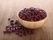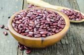 Czerwona fasola w drewniane miski na stare drewniane