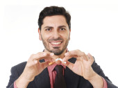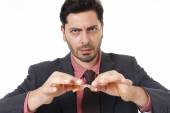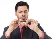 young hispanic attractive man breaking cigarette in quit smoking resolution