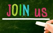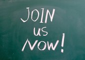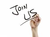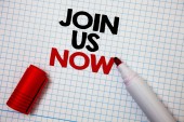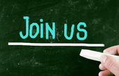 Dołącz do nas teraz tytuł napisane kredą na tablicy