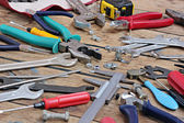 Narzędzia na podłodze z drewna.