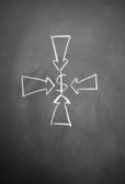 strzałek rysowane kredą na tablicy