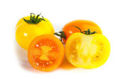 Różne kolory pomidory, Lycopersicon Solanum, na OPALAĆ biały