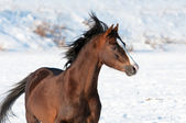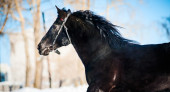 Rosyjska jazda konna koń czarny płaszcz portret w zimie