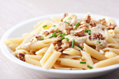Makaron z sosem orzechowym