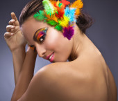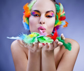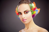 Zdjęcie "Beautiful young female face with bright fashion multicolored make-up &" może być wykorzystywane do celów osobistych i komercyjnych zgodnie z warunkami zakupionej licencji Royalty-free. Obraz jest dostępny do pobrania w jakości wysokiej rozdzielczości do 5760x3840.