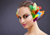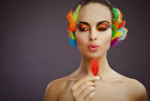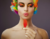 Zdjęcie "Beautiful young female face with bright fashion multicolored make-up &" może być wykorzystywane do celów osobistych i komercyjnych zgodnie z warunkami zakupionej licencji Royalty-free. Obraz jest dostępny do pobrania w jakości wysokiej rozdzielczości do 5760x3840.