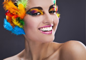 Beautiful young female face with bright fashion multicolored make-up &