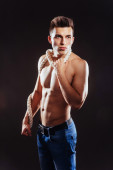 Młody mężczyzna kulturysta pozowanie. Dobre przygotowanie fizyczne.