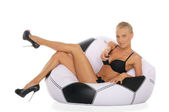 kobieta z piłki nożnej na nadmuchiwane krzesło