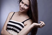 sexy brunetka pozowanie w klasycznej sukience.