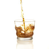ciemne piwo. Zdjęcie wlać szklankę piwa