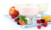 koktajle mleczne z owoców i czekolady na niebieskim tle