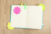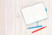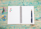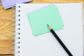 otworzyć książki pamiętać z kleistych i ołówek na drewniane tła