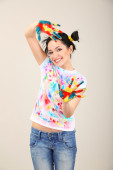 portret pięknej kobiety dorywczo w kolorowy strój