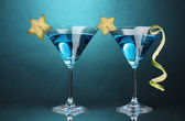 okulary koktajl z cytryna i mięta na niebieskim tle