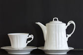 talerze porcelanowe białe i spodki