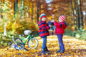 Zdjęcie "Dwa małe dziecko chłopców z rowerami w lesie jesienią" może być wykorzystywane do celów osobistych i komercyjnych zgodnie z warunkami zakupionej licencji Royalty-free. Obraz jest dostępny do pobrania w jakości wysokiej rozdzielczości do 5760x3840.
