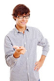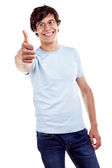 Facet wyświetlone o kciuk znak