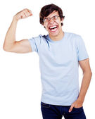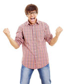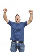 Zdjęcie "Szczęśliwy facet z podniósł pięści" może być wykorzystywane do celów osobistych i komercyjnych zgodnie z warunkami zakupionej licencji Royalty-free. Obraz jest dostępny do pobrania w jakości wysokiej rozdzielczości do 5760x3840.